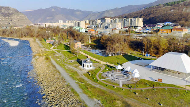 В Карачаевске мы не можем пройти мимо нашей красавицы "Горянки", которая является объектом культурного наследия Российской Федерации. Официальное название памятника – "Приглашение в Карачаевск", девушка держит в руке чашу с айраном для угощения гостей города.Вечерами все горожане собираются в прекрасном парке "Зелёный остров".