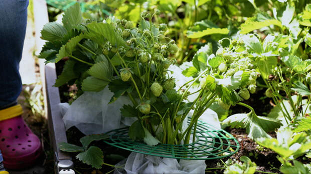 Чтобы земляника видела больше солнца, ягоды следует достать из-под листиков. Для этих целей есть специальное приспособление – подставка в виде розетки. Она продаётся в любом магазине для дачников. Ещё землянику надо обрабатывать древесной золой. Подсыпать её следует к корням растения, чтобы оно не загнивало.