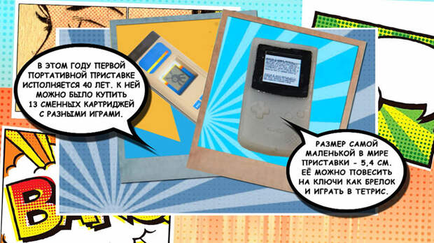 Справка: В 2019 году первой портативной приставке исполняется 40 лет. К ней можно было купить 13 сменных картриджей с разными играми. Размер самой маленькой в мире приставки – 5,4 см. Её можно повесить на ключи как брелок и играть в тетрис.