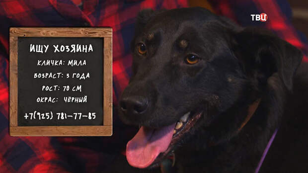Мила: возраст – 3 года, рост – около 70 сантиметров, окрас насыщенный чёрный. Активная, но послушная собака.