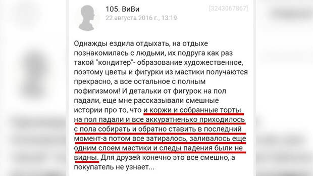 Нет юридической регистрации – формально нет и кондитера. А значит, и никакой ответственности. Слепил торт из того, что было, а если кто отравился, то это его проблемы. В конце концов, заказал на свой страх и риск.
