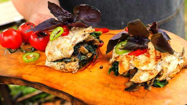 Куриное филе со шпинатом и грибами