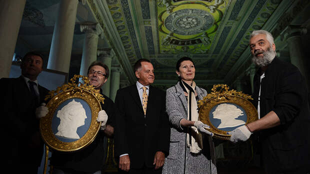 – Парные медальоны с профильными портретами Петра I и Екатерины II, являются уникальными произведениями и относятся к первоначальному убранству дворца-театра в подмосковном имении "Останкино" конца XVIII века.