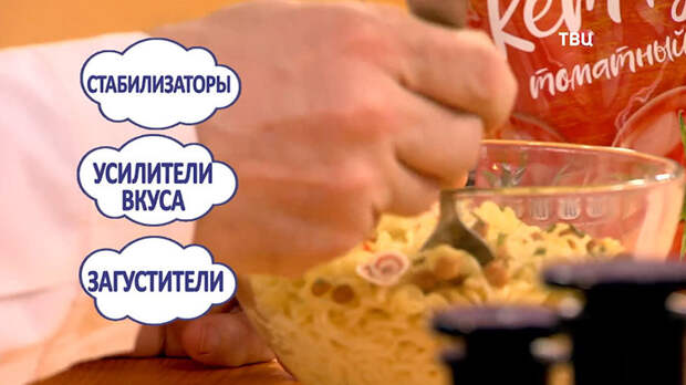 Следующий чемпион по избытку вредного – лапша быстрого приготовления. Она богата стабилизаторами, усилителями и загустителями. Кстати, производители с нами честны. Они так и пишут: "Лапша со вкусом курицы". Согласитесь, со вкусом курицы и с курицей – это две разные вещи.