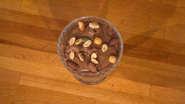 Добавить арахисовое масло, мёд или шоколад (на ваш выбор). Перемешать. Добавить какао и снова хорошенько перемешать.Мороженое становится очень вкусным уже на этой стадии. Так что можете смело пробовать. Если вы хотите, чтобы десерт был более твёрдым, отправьте его в морозилку.