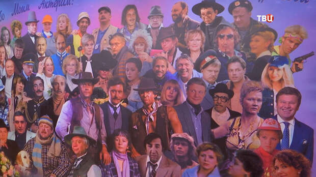 − Руслан Никулин, мой студент, который живёт в Харькове. Здесь некоторые не поместились. Вот Дима Губерниев попал, он снялся в картине "Любовь и Сакс" в маленьком эпизоде. На коллаже есть и Игорь Христенко, который тоже снялся в одной картине. И Ирочка Розанова, она замечательно сыграла в картине "Дети понедельника". А это − мой эскиз к "Человеку с бульвара Капуцинов", который хранится в Бахрушинском музее. Я смеюсь, потому что, кроме фамилии Сурикова и каких-то черновых набросков, у меня нет живописи.