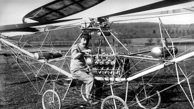 Первое упоминание о вертолёте найдено в Китае. В 320 году учёный Го Хун описал "летающие колесницы" с вращающимися лопастями. В XV веке свой вариант с пружиной предложил Леонардо да Винчи. В XVIII веке вертолёт пытался сконструировать Ломоносов, в XX это удалось французу. Первую действующую модель создал бредивший авиацией инженер Поль Корню. 13 ноября 1907 года его летательный аппарат весом 260 килограммов впервые оторвался от земли на 30 сантиметров и целых 20 секунд держался в воздухе.