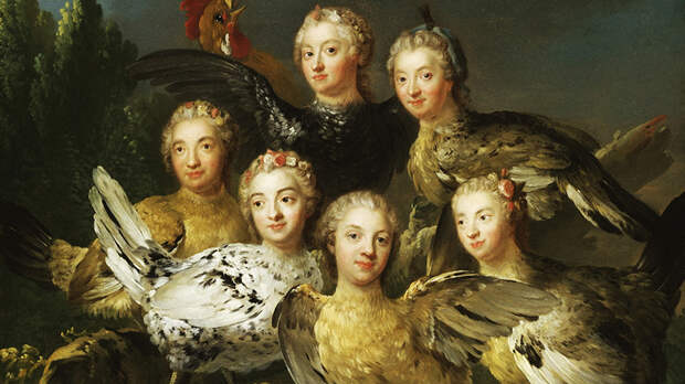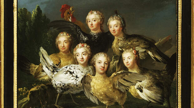 Это картина-шутка, картина-сарказм, в ней не надо искать сложные символы и смыслы. Она изображает ровно то, что есть. Это добрая насмешка над образами милых придворных дам, которые стараются выглядеть всегда красивыми и суетятся, как очаровательные курочки.
