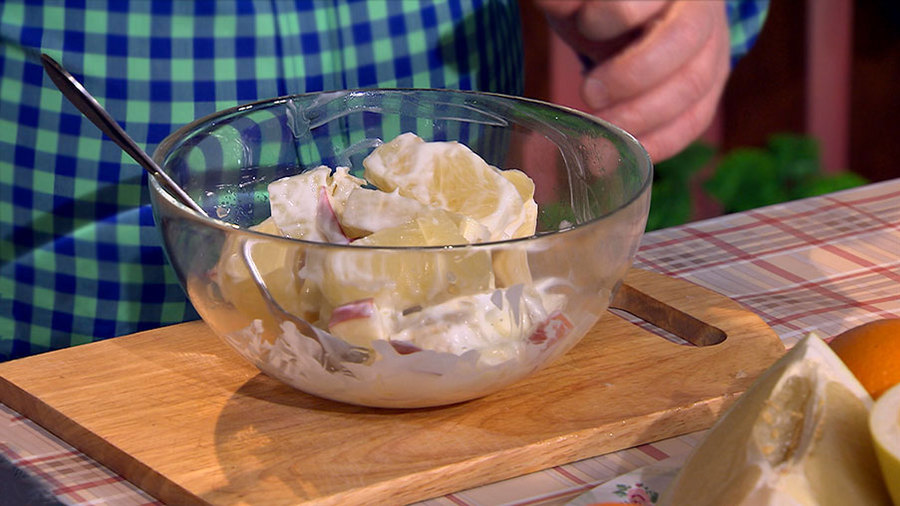 Нужно только добавить к мелко нарезанному помело кусочки яблока и заправить всё это нежирным йогуртом. Такой салат поднимет настроение и поможет справиться с весенней хандрой.