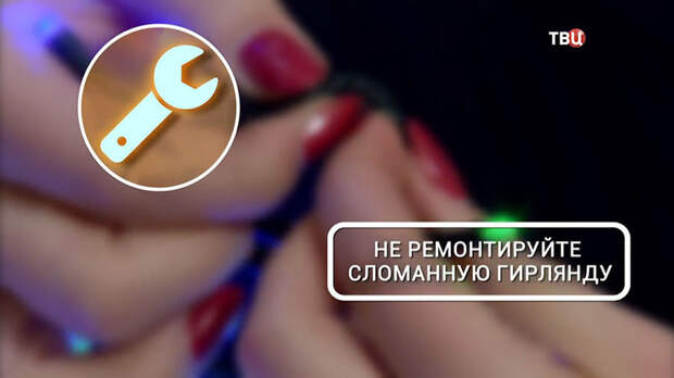 Если гирлянда сломана, не меняйте лампочки и тем более не заклеивайте провод скотчем.