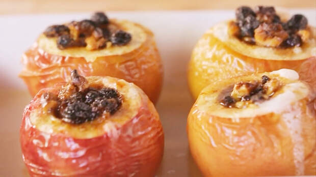 Во времена СССР запечённые яблоки стали блюдом-спасателем. В ход шли фрукты, которые потеряли свежесть и блеск. Чтобы не выбрасывать урожай, хозяйки начиняли подвявшие плоды творогом, изюмом, а иногда даже тыквой. Кто-то готовил и несладкие – например, с рисом.
