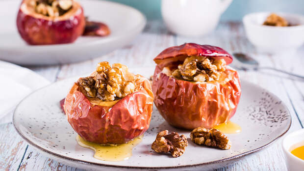 – Запекание – самый простой и доступный способ приготовления яблок. Достаточно вынуть сердцевину, не повредив донышко, положить внутрь смесь орехов, сухофруктов, мёд и отправить в печь на 15-30 минут.