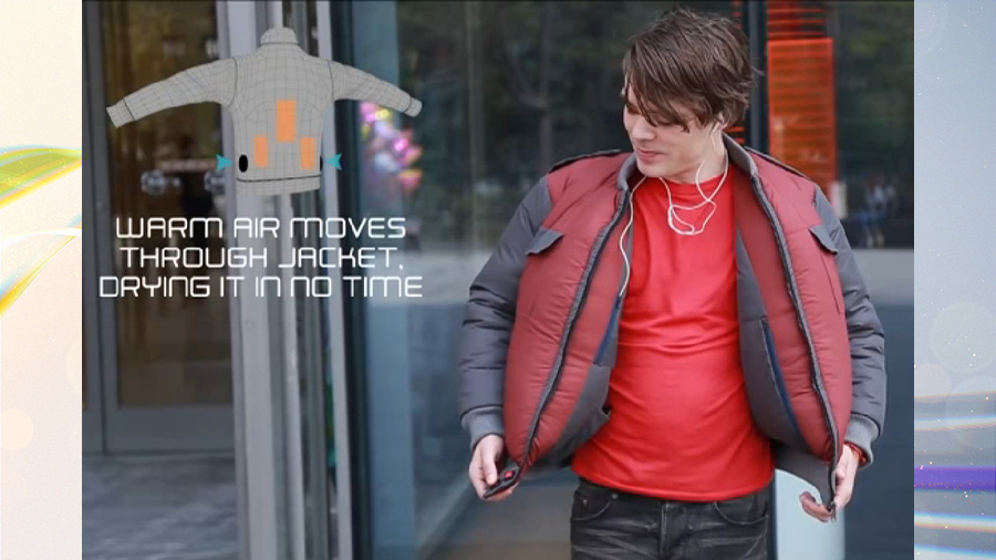 Помните куртку Марти Макфлая из фильма "Назад в будущее"? Такой гаджет уже появился! Куртка снабжена тремя нагревательными элементами, один из которых расположен на спине и два в передней части, в районе карманов. Имеется принудительная вентиляция для улучшения циркуляции воздуха. Воздухозаборники, расположенные в нижней части куртки, нагнетают воздух в специальные вентилируемые вставки, так что с её помощью можно согреть руки, быстро высохнуть и при необходимости даже охладиться.