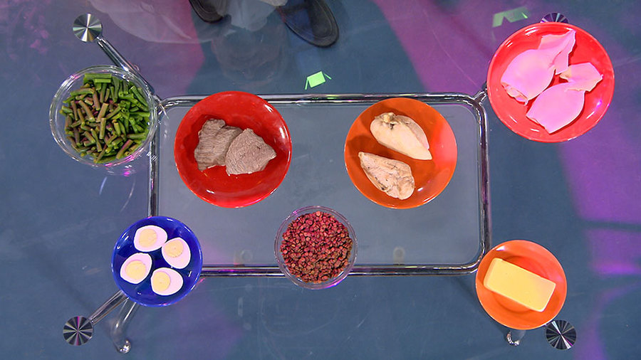 Вот оно – меню позднего ужина: кусочек отварной куриной грудки или индейки, порция кальмаров, пара яиц, ломтик телятины, кусочек обычного сыра, отварная фасоль или чечевица.