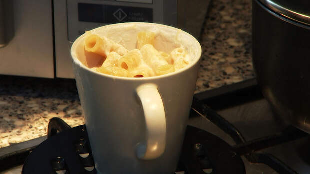 Пара рецептов для тех, кто не любит терять время и предпочитает основательные перекусы. За 6 минут в кружке можно приготовить мясные тефтели из говяжьего фарша, молока и яйца. Или макароны с сыром и молоком.
