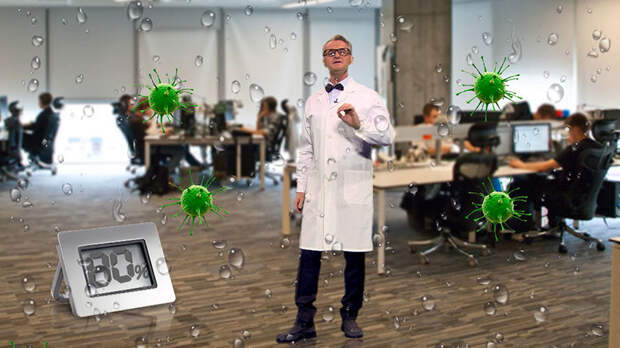 Защита в общественном транспорте понятна. Это очки, перчатки, маска. А на рабочем месте долго фантомасом не проходишь. В офисе определяющим фактором заражения является влажность воздуха.