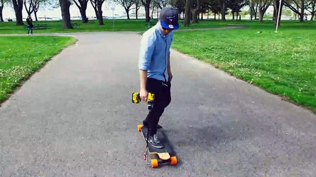 Лонгборд на электротяге – хит этого сезона. Но у такого электротранспорта есть один недостаток – цена. Цены на полностью укомплектованные моторами и аккумуляторами доски с лёгкостью "переваливают" отметку в 80 тысяч рублей. Однако "самоделкины" не дремлют – один народный умелец оснастил свою доску приводом от ручной электродрели. Дёшево и сердито. И доска едет сама!