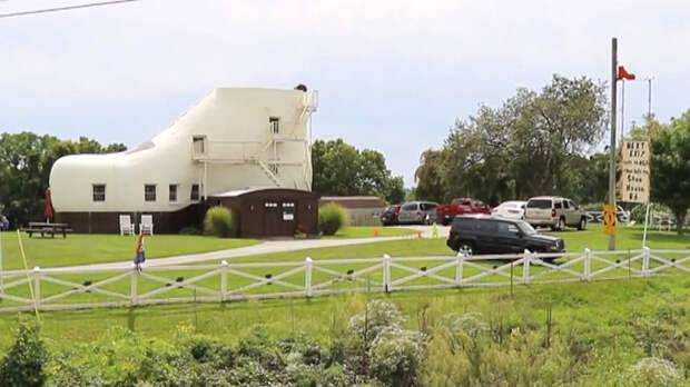 А это уже достопримечательность штата Пенсильвания. Дом-ботинок. Мечта владельца обувных магазинов Махлона Хейнца, ставшая реальностью в середине XX века. В процессе строительства хозяин так увлёкся, что не только сам коттедж, но и всё вокруг – собачью конуру, почтовый ящик, указатель – сделал в виде ботинка.