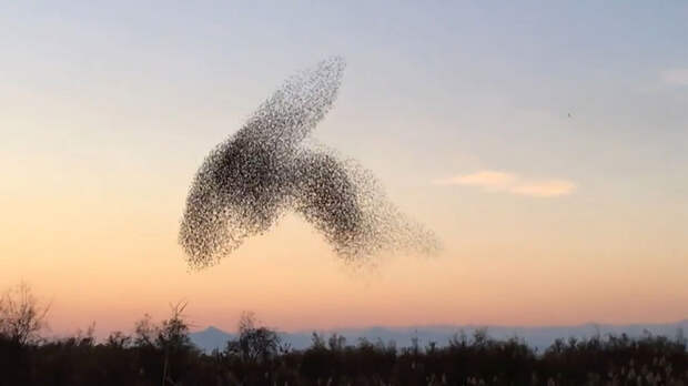 Во время мурмурации тысячи птиц сбиваются в громадные стаи и прямо на лету формируют уникальные небесные фигуры.
