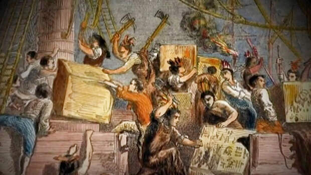 16 декабря 1773 года − дата исторического "Бостонского чаепития". В этот день американские колонисты выступили против введённого Великобританией налога на чай. В Бостоне руководимая Сэмюэлем Адамсом группа "Сыны Свободы" переоделась в индейцев. С дубинами в руках мятежники поднялись на борт корабля "Дартмут" и выбросили в воду 45 тонн чая, принадлежавшего Британской Ост-Индской компании. Раздражение вызвало то, что законы, по которым жили в Америке, писались в Лондоне. Это событие послужило толчком к Войне за независимость и в конечном итоге – к образованию США.