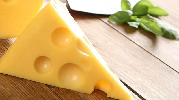 Главный показатель "сырного здоровья" – корка: ровная, не слишком сухая и без трещин. Качественный сыр при ощупывании слегка пружинит, а в центре мягкий. Обратите внимание на разрез: окраска должна быть равномерной, без белёсых вкраплений, а размер глазков – одинаковым по всей поверхности. Увидели хаотичный рисунок крупных и мелких сырных дырочек – это признак того, что при изготовлении использовалось некачественное молоко. Неравномерная окраска выдаёт недозрелый продукт – он безвкусный и скрипит на зубах.