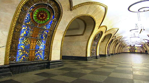 В 1952 году открылись сразу две станции кольцевой линии московского метро. "Комсомольскую" придумала группа архитекторов во главе с Алексеем Щусевым. Её тема – триумф Победы, это отражено в художественном решении. Вторая станция – "Новослободская" архитектора Алексея Душкина с цветными витражами по эскизам Павла Корина. Она до сих пор поражает гостей столицы.