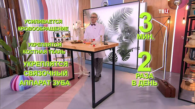 Беречь зубы − это не значит пользоваться ими как можно реже. Утренняя гимнастика нужна не только для мышц спины, рук и ног, но и для зубов. Надо широко открыть, а потом закрыть рот. Движения ритмичные, частые, чёткие. Переходим к мелкому постукиванию зубами: импульсно-ударная нагрузка способствует уплотнению и укреплению костной ткани зубов. И не забудьте про массаж дёсен: круговыми движениями подушечки пальца воздействуем на десну – снизу вверх и сверху вниз. Упражнения выполняются в течение трёх минут, два раза в день. Они усиливают кровообращение, укрепляют костную ткань и связочный аппарат зуба.