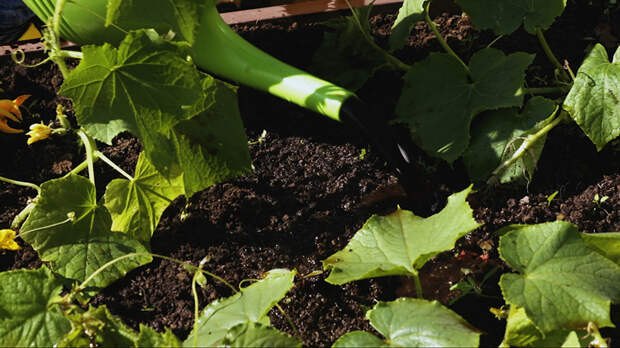 Чтобы пчёлы прилетели на огород, нужно каждую неделю подкармливать огурцы, например, гуматом калия. В 10-литровую лейку следует добавить две столовые ложки удобрения и пролить растения этим раствором.