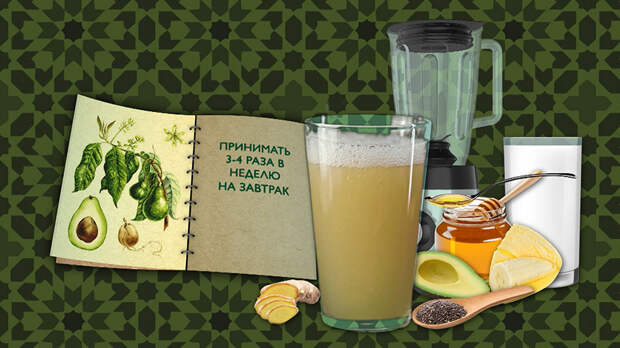 Для приготовления вам понадобятся: половина мякоти спелого авокадо, чашка шпината, пол-банана, столовая ложка семян льна или чиа, 200 миллилитров миндального или овсяного молока (без сахара), чайная ложка мёда и немного имбиря. Все ингредиенты надо смешать в блендере до получения однородной массы. Если смузи окажется густым, можно добавить в него немного воды.