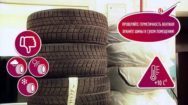 Хранить покрышки тоже надо правильно. Упакуйте их в пакет или чехол и поместите в сухое, не холодное место. Балконы под запретом – колёса могут не выдержать зимних морозов. Шины с дисками надо хранить в горизонтальном положении, а без них – в вертикальном. Будьте бдительны и оставайтесь в безопасности!