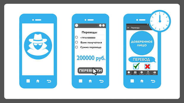 Итак, как подстраховаться с помощью нового сервиса? Допустим, вы клиент банка. Подключая эту услугу, вы можете выбрать человека – родственника или просто хорошего знакомого, который будет подтверждать или отклонять денежные переводы, если они покажутся ему подозрительными. Например, вы находитесь под воздействием мошенников, которые заставляют сделать перевод 200 тысяч рублей на некий безопасный счёт неизвестному лицу. И вы переводите деньги. В этот же момент доверенное лицо получит сообщение о переводе или об операции по снятию наличных в банкомате. Помощник должен в течение 12 часов это действие подтвердить или не подтвердить. Без одобрения помощника операция не совершится.