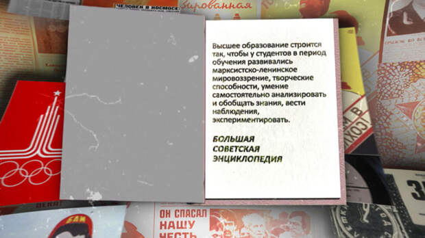 "Высшее образование строится так, чтобы у студентов в период обучения развивались марксистско-ленинское мировоззрение, творческие способности, умение самостоятельно анализировать и обобщать знания, вести наблюдения, экспериментировать". Большая Советская энциклопедия.