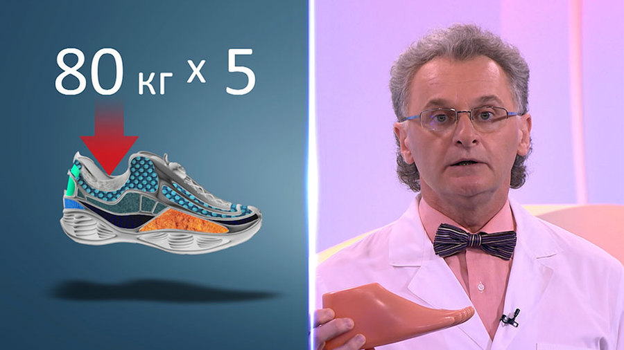 Вы скажете: "У меня кроссовки самой последней модели, с вкачанным воздухом и тройной амортизацией!" Действительно, сотрясений в такой обувке будет на порядок меньше, но биомеханику голой стопы никакая суперсовременная система заменить не в состоянии. Это тоже недавно доказано. Если учесть, что при беге вес тела переносится на голеностоп, нагрузка на связочный аппарат возрастает в пять раз. Если человек весит 80 кг, его стопа принимает нагрузку до полутонны!