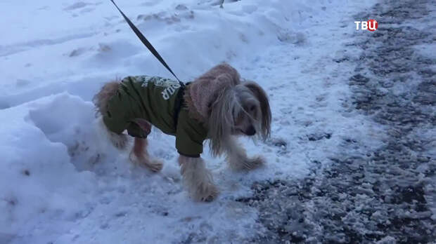 Каждая прогулка зимой для Сёмы − мучение. Китайская хохлатая пуховая собака перебирается с ноги на ногу и старается не наступить на дорожку, которую посыпали реагентами соседи по даче.