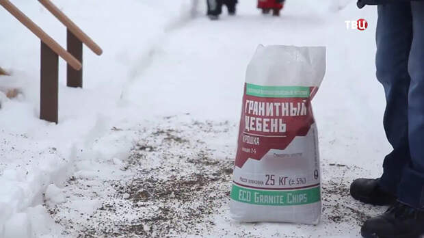 Гранитная крошка дешевле и экологичней, чем соль. Её цена − от 250 рублей за двадцатикилограммовый мешок. Она улучшает сцепление с дорогой и не топит лёд. Обработанная поверхность остаётся сухой и используется при любой температуре.