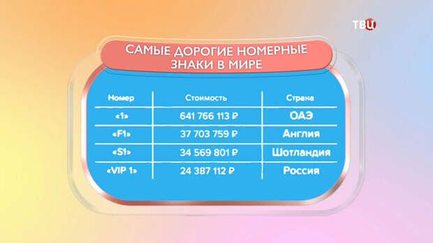 Номера официально продают во многих странах и отнюдь не за 3 копейки. Самый дорогой госзнак закреплён за Арабскими Эмиратами. Его цена составляет почти 642 миллиона в пересчёте на рубли. В списке также значится Великобритания. Именно там Роман Абрамович приобрёл номер VIP1 за 24 миллиона.