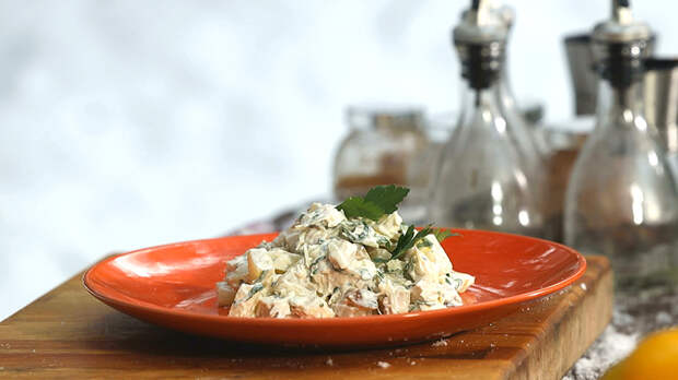 Гриль-салат с курицей и ананасами