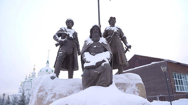 Енисейский острог был основан летом 1619 года боярским сыном Петром Албычевым и стрелецким сотником Черкасом Рукиным. По центру памятника основателям острога находится фигура инока Тимофея Иванова, который поселился здесь в конце XVI века. Место не просто памятное – отсюда начиналось освоение всего Среднего Енисея. Острог был главным опорным пунктом, откуда уходили экспедиции дальше в Сибирь.