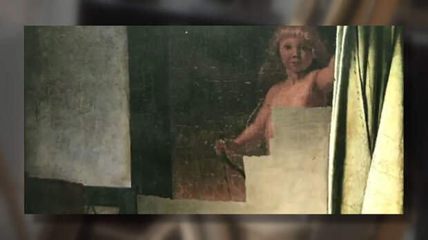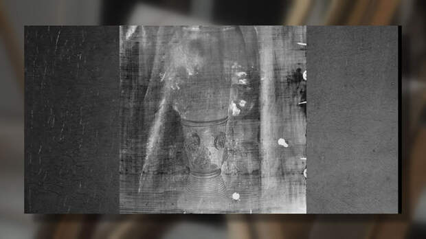 − Например, Вермеер закрасил большой бокал, который находился на переднем плане. Сейчас бокал скрывает штора. Художник иначе развернул фигуру девушки. Поначалу она была более повёрнута к стене, что давало её отражение в бокале.