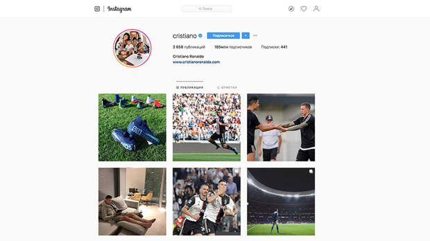 Ну как не полюбоваться на такого красавчика, как Криштиану Роналду! 184 миллиона подписчиков его странички точно так и думают. Лучезарную улыбку футболиста не способны сломить никакие скандалы, которые разгораются вокруг его имени. Пока некие девушки пытаются обвинить спортсмена в посягательствах на свою честь, он знай себе выкладывает умилительные фото с детьми и своей возлюбленной Джорджиной, на которой, кстати, недавно прилюдно обещал жениться. Публикаций у Роналдо больше двух с половиной тысяч и останавливаться он определённо не собирается – рекламирует на своей страничке спортивную одежду, делится изображениями своего совершенного тела и получает за это миллионы лайков от благодарных подписчиков со всего мира.