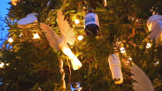 Девятиметровая ель в Лондоне стала самой скандальной в нынешнем году. Автор идеи, художник Дэмьен Хёрст, украсил дерево гирляндами из сосисок, таблетками, шприцами и медицинскими инструментами. Местные жители пришли в ужас, ведь стоит символ Рождества рядом с католической церковью и приютом для бездомных. Сам художник ответил, что видит в этой идее лишь медицинскую и научную темы, а сосиски в его интерпретации – символ новогоднего изобилия.