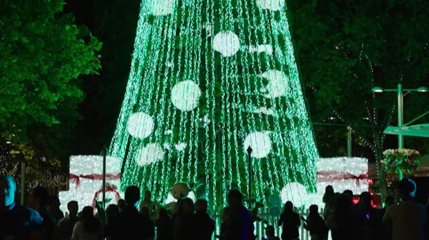 Такое количество огней не зажигали ещё ни на одной ёлке в мире. Рождественская красотка уже успела записаться в Книгу рекордов Гиннеса.