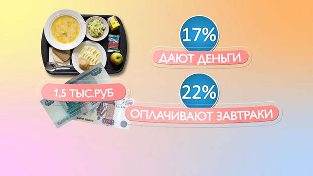 С началом учебного года перед родителями опять встаёт вопрос: надо ли давать детям-школьникам карманные деньги и, если надо, то сколько? Общественное мнение на этот счёт решили выяснить социологи. Преобладающее большинство россиян выделяют детям определённую сумму и тщательно контролируют расходы. 17% дают деньги и ни о чём не спрашивают. 22% предпочитают оплатить завтраки, проезд и всё остальное, но считают, что наличных у ребёнка быть не должно. Что касается конкретных сумм, то основная масса участников опроса на эти цели отпускает 1,5 тысячи в месяц.