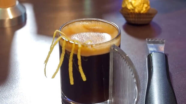– Этот напиток был придуман буквально 3 года назад. У него очень брутальный и насыщенный кофейный вкус. Нам понадобится лёд, лимон, классический тоник и, конечно же, эспрессо. Этот напиток рекомендуется пить через трубочку.