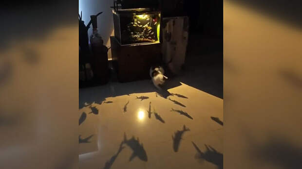 Кот, ведущий бой с тенью