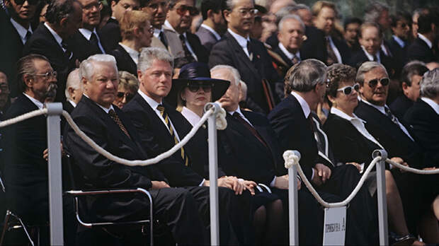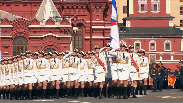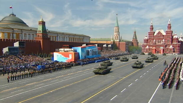 Холодная война закончилась, Советский Союз распался. Первый парад в истории новой России прошёл в 1995 году. На трибуне Мавзолея выступил Борис Ельцин. Среди приглашённых гостей присутствовали главы 56 иностранных государств, в том числе премьер-министр Великобритании, президенты Франции и США, канцлер ФРГ. По брусчатке Красной площади прошагали ветераны, а в небо впервые взлетели военные самолёты.