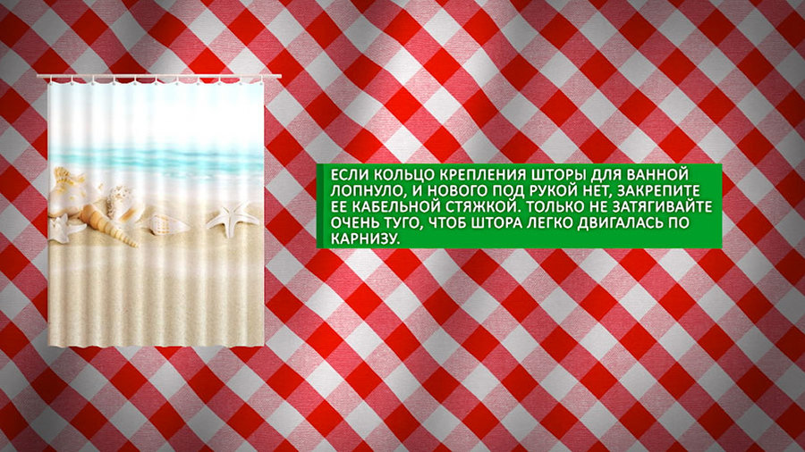 Кабельной стяжкой можно заменить пластмассовые кольца для шторы в ванной. Они же вечно куда-то пропадают, не так ли?