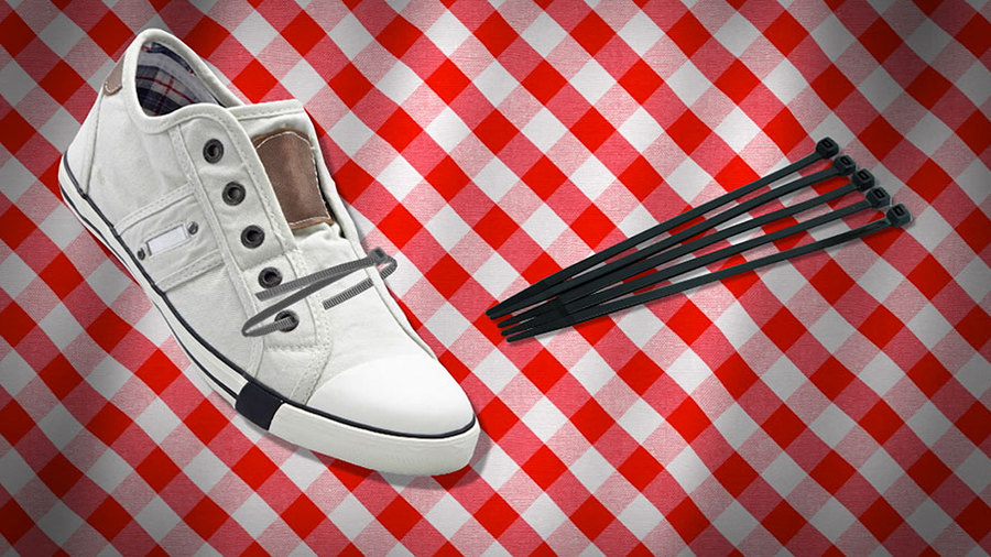 Если порвались шнурки на кедах или кроссовках, а новых нет под рукой, то дойти до магазина, не потеряв при этом обувь, вам помогут несколько стяжек.