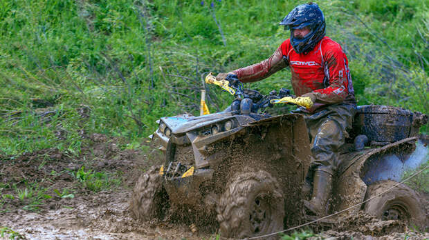 Перед поездкой наденьте защитную экипировку: высокую обувь, водонепроницаемый костюм и обязательно шлем. Не забудьте права и документы на квадроцикл.