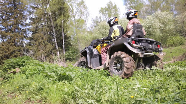 – Чтобы правильно заехать на горку, надо привстать и перенести массу тела на переднюю часть квадроцикла. При съезде следует максимально отодвинуться назад, так как развесовка сконцентрирована на передней части квадроцикла. Бывает, что квадроциклы переворачиваются назад из-за очень крутого подъёма вверх, когда люди пытаются дрифтить, заходят в поворот на высокой скорости или наезжают одной из сторон на очень большой предмет – муравейник или пень.